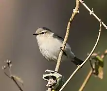 When not singing, the common chiffchaff can be difficult to distinguish from other leaf warblers with greenish upperparts and whitish underparts, particularly the willow warbler. However, that species has a longer primary projection, a sleeker, brighter appearance and generally pale legs. Bonelli's warbler (P. bonelli) might be confused with the common chiffchaff subspecies tristis, but it has a plain face and green in the wings.[10] The common chiffchaff also has rounded wings in flight, and a diagnostic tail movement consisting of a dip, then sidewards wag, that distinguishes it from other Phylloscopus warblers[34] and gives rise to the name "tailwagger" in India.[27]