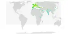 - Temperate areas of Europe, North Africa, the Middle East, and Asia north of the Hindu Kush-Himalaya mountain ranges to the NW Sea of Okhotsk region. Northern Asian populations migrate south in winter, apparently not crossing the Himalayas but diverting to the west.