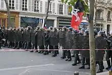 In January 2009, the French state implemented a rapprochement ("bringing together") of the police and the gendarmerie.[14] While this policy falls short of a complete fusion or merger, as the gendarmes have kept their military status (while the CRS are a highly unionized civilian body), this has led to more commonality in terms of equipment for the two forces.
