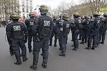 The Compagnies républicaines de sécurité (French: [kɔ̃paɲi ʁepyblikɛn də sekyʁite], Republican Security Corps), abbreviated CRS, are the general reserve of the French National Police. They are primarily involved in general security missions but the task for which they are best known is crowd and riot control.