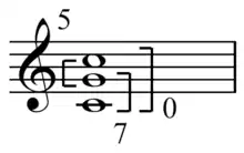 As a further example take the chromatic sets 7-1 and 5-1. If the pitch-classes of 7-1 span C–F♯ and those of 5-1 span G–B then they are literal complements. However, if 5-1 spans C–E, C♯–F, or D–F♯, then it is an abstract complement of 7-1.[9] As these examples make clear, once sets or pitch-class sets are labeled, "the complement relation is easily recognized by the identical ordinal number in pairs of sets of complementary cardinalities".[3]