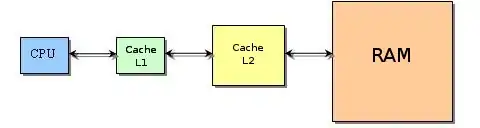 To increase the computational power, processors are generally equipped with a cache memory which decreases the memory access latency. Below, the figure shows the hierarchy between the processor and the memory. First the processor looks for data in the cache L1, then L2, then in the memory.