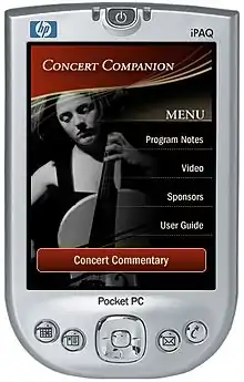 The Concert Companion was a hand-held device intended to enhance concert experiences by presenting information that complements the music while the music is being performed. Using wireless technology, the Concert Companion delivered explanatory text, program notes and video images in real time with the music. The Concert Companion was developed under the auspices of the Kansas City Symphony by former executive director Roland Valliere.