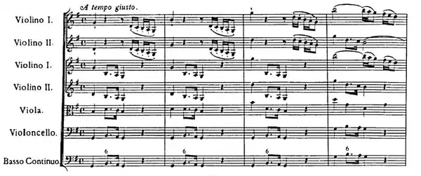 2 time follows the pattern set by Corelli. The concertino parts dominate the movement, with the two solo violins in expressive counterpoint. Each episode for soloists is followed by a tutti response.