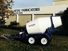 A variant of standard concrete transportation is the concrete or cement mixing trailer. These small versions of transit-mix trucks are used to supply short loads of concrete. They have a concrete mixing drum with a capacity of between 1 and 1.75 cubic yards (0.76 and 1.34 m3). Cart-aways are usually pulled behind a pick-up truck and batched from smaller batching systems. The mixing trailer system is popular with rental yards and building material locations, which use them to supply ready-mix to their regular customer base.
