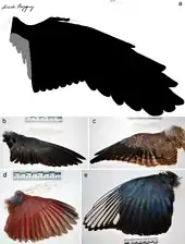 A 2018 study of the specimen CUGB P1401 indicated the presence of heavy spotting on the wings, throat, and crest of Confuciusornis.[35]