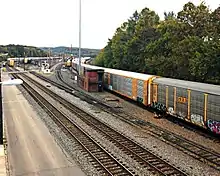 The Western Maryland Railroad's line crossed the Alleghenies from Cumberland and entered Connellsville on the right side of the Youghiogheny River, connecting with two separate railroad companies. The first connection was with the Pittsburgh and Lake Erie Railroad's line from Pittsburgh which continued down the right side of the river to Pittsburgh. This was in direct competition with the B & O directly across the river. The second connection of the Western Maryland was to the Norfolk and Western Railroad which crossed the river to the left side on the former Pittsburgh & West Virginia railroad bridge.