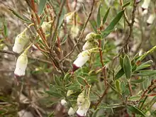 Conostephium pendulum, commonly known as pearl flower,[1] is a small, open shrub in the family Ericaceae endemic to the Swan Coastal Plain from Eneabba to Margaret River.