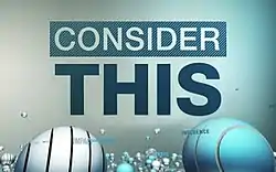 Consider This is an American weeknight current affairs television talk show hosted by Antonio Mora that was broadcast on Al Jazeera America.[1] The program aired from August 2013 to February 2015, and featured interviews and panel discussions on the stories of the day. Consider This also featured interactive segments where the audience joins the conversation via social media.[2] The show was produced and shot from New York City and was produced from the same studio as Real Money with Ali Velshi, another show on Al Jazeera America. Consider This airs from 10pm to 11pm eastern time, Monday through Friday. There were repeats in the morning and on weekends.