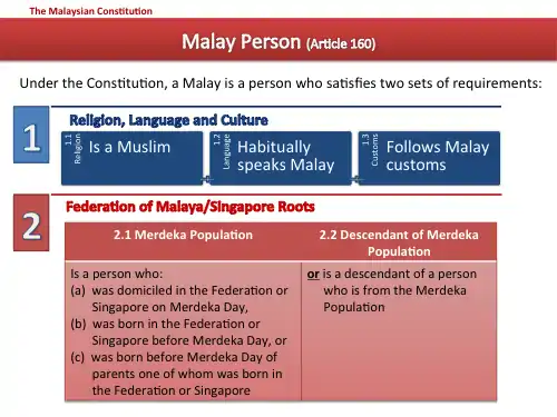 - The status of the Malay language as the official language