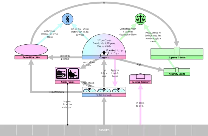 On May 30, the Convention agreed, at the request of Gouverneur Morris, "that a national government ought to be established consisting of a supreme Legislative, Executive and Judiciary".[45] This was the convention's first move towards going beyond its mandate merely to amend the Articles of Confederation and instead produce an entirely new government.[46] Once it had agreed to the idea of a supreme national government, the convention began debating specific parts of the Virginia Plan.