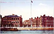 The old Whangpoo Road premises were demolished in 1931 and the original plan was that the consulate would be re-built within a year. However, in 1932, Congress withdrew the appropriations for 1933, leaving the consulate in the old Kalee Hotel building.[9] Appropriations were obtained in 1935 and grand plans for the new consulate announced. These never came to fruition. (The site and the site of the former German Consulate General next door that was demolished in 1937[10] is now the location of the Seagull Hotel which was built in the 1980s).