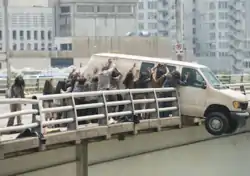 The pair reach the van but attract a large group of walkers. They search the van for clues, find a stretcher from Grady Memorial Hospital, and deduce that Beth Greene (Emily Kinney) has been taken there. Now trapped by walkers, they go to the front of the van and use their weight to push it over the edge of the overpass and onto the ground below. Seatbelts and airbags allow them to survive the fall, though Carol suffers a shoulder injury.