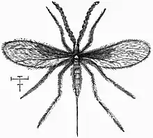 Contarinia (formerly Diplosis or Mayetiola) tritici (Kirby) is a small dipterous insect of the family of gall gnats. It depredates wheat, to which it is nearly as destructive as the famous and closely allied species, the Hessian fly. As is typical for agricultural pests, the species is known by a number of common names, including wheat fly, lemon wheat blossom midge, wheat blossom midge, wheat yellow blossom midge, yellow wheat blossom midge, and yellow wheat gall midge.[1]