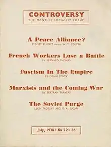 The first editor of Controversy was the school teacher, and later Independent Labour Party chairman, C. A. Smith. According to historian Raymond Challinor, Smith played a pivotal role in turning Controversy into a publication where "the many diverse views held within the working-class movement could be openly discussed without rancour."[1] After Smith the magazine was edited by Jon Evans together with George Padmore and then later by R. E. Fitzgerald.[1]