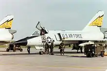 The Convair F-106 Delta Dart was the primary all-weather interceptor aircraft of the United States Air Force from the 1960s through to the 1980s. Designed as the so-called "Ultimate Interceptor", it proved to be the last specialist interceptor in U.S. Air Force service to date. It was gradually retired during the 1980s, with the QF-106 drone conversions of the aircraft being used until 1998 under the Pacer Six program.[1][2][3]