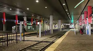 Dallas Convention Center is a DART Light Rail station located in Dallas, Texas. It is located at Memorial Drive and Lamar Street, underneath the Dallas Convention Center in the Convention Center District. It opened on June 14, 1996,[1] and is a station on the Red and Blue lines, serving the Dallas Convention Center, the J. Erik Jonsson Central Library, Dallas City Hall and Pioneer Park.