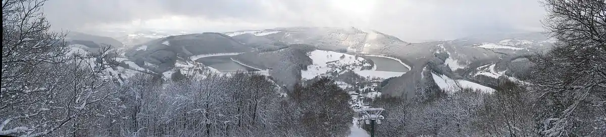 The Coo-Trois-Ponts Hydroelectric Power Station is a pumped-storage hydroelectric power station located in Trois-Ponts, Province of Liege, Belgium. Located next to the Amblève River, the power station uses its water to support a power scheme where water is pumped from a lower reservoir to one of two upper reservoirs known as Coo I and Coo II. When energy demand is high, water can be released from these reservoirs for power generation. The water then returns to the lower reservoir and the process repeats as needed. The same machines that pump the water to the upper reservoirs at a higher elevation are also used as generators. The plant was commissioned in two stages, Coo I (1969) and Coo II (1978). It is owned by Electrabel and has an installed capacity of 1,164 MW.[2]