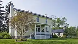 The farm complex is sited to the south of Bullskin Run. The principal buildings are the stone 1813 house, the frame 1832 house, several outbuildings and a remnant of a bank barn, now enclosed with modern construction. The 1832 house is the main house, located on a hill overlooking the stream and the remainder of the complex. The house features rooms on either side of a center stair hall, with a service extension to the rear, now extended with modern construction. The upper level matches the lower level. The clapboarded house is on a limestone foundation, with brick chimneys at either end. The front porch was added in the 1890s. The 1813 stone house is a one-story, four-bay structure built in local limestone, using large stone blocks. The interior presently has two rooms, with traces of greater subdivision in the past. The spring house is from the same era, built in stone. Other buildings date to the early 20th century.[2]