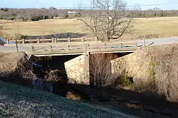 The Coop Creek Bridge is a historic bridge in Sebastian County, Arkansas, just outside the city of Mansfield. It carries Broadway, designated County Route 62, across Coop Creek just north of Mansfield Lake. It is a two-span open masonry structure, with one span of 18 feet (5.5 m) and one of 21 feet (6.4 m), with a total structure length of 44 feet (13 m). The bridge is set on masonry abutments and piers, with a reinforced concrete deck that is lined by simple concrete railings. It is a well-preserved example of a masonry bridge built in 1940.[2]