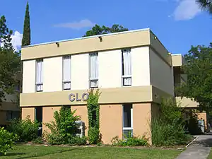In February 1967, CLO was reincorporated under the name of the Collegiate Living Organization in order to comply with a previously unnoticed law which disallowed the use of the word "cooperative" in the name of any corporation not associated with the agricultural industry. At this time the organization adopted a non-discrimination policy. In 1968 the organization was the first off campus living organization including social fraternities and sororities at the University of Florida campus to accept African-American students. Under the leadership of CLO alumni Frank Shepherd, architect Jack Turner and enthusiastic support of the University of Florida President and administration, a successful movement to acquire funds through a HUD loan for new buildings resulted in replacement of the wood and brick houses historically referred to as the "Brown House," "White House," "Brick House," and "Chow Hall" with modern concrete buildings with capacity for up to 80 residents. These new buildings were completed in the early 1970s. It was also in the early '70s when women began to be admitted as members. On April 7, 2009 CLO returned its name to Cooperative Living Organization.[3]