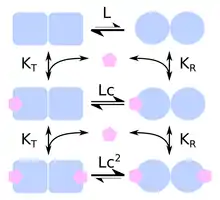 Since its inception, the MWC framework has been extended and generalized. Variations have been proposed, for example to cater for proteins with more than two states,[17] proteins that bind to several types of ligands [18][19] or several types of allosteric modulators [19] and proteins with non-identical subunits or ligand-binding sites.[20]