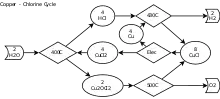 The copper–chlorine cycle (Cu–Cl cycle) is a four-step thermochemical cycle for the production of hydrogen. The Cu–Cl cycle is a hybrid process that employs both thermochemical and electrolysis steps. It has a maximum temperature requirement of about 530 degrees Celsius.[1]