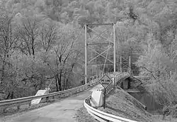 Corbin Bridge, also known as Huntingdon County Bridge No. 20, is a historic suspension bridge spanning the Raystown Branch Juniata River and located at Juniata Township, Huntingdon County, Pennsylvania. It was built by the Reading Steel Products Inc. in 1937. It measures 322-foot-long (98 m) and has a 12.5-foot-wide (3.8 m) deck. It is the only road suspension bridge in Huntingdon County.[2]