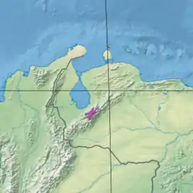 The Cordillera de Merida páramo is to the south of the Lake Maracaibo in the Cordillera de Mérida massif of northeastern Venezuela. It has an area of 284,898 hectares (704,000 acres).[1] It is surrounded by the Venezuelan Andes montane forests ecoregion.[2]