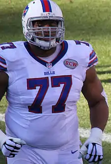 Cordy Glenn (born September 18, 1989) is a former American football offensive tackle. He was drafted by the Buffalo Bills in the second round of the 2012 NFL Draft. He played college football at Georgia. Glenn earned a 2010 All-American selection and was considered one of the best offensive guards of his class by NFLdraftscout.com.[1] He also played for the Cincinnati Bengals.