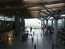 The main terminal at Cork Airport contains several shopping and eating facilities both before and after the security screening area, a bureau de change kiosk and ATM (cash machine) and a business lounge operated by Swissport. There are eight departure gates in the airport, two of which have an airbridge.[27] Wi-Fi is available throughout the terminal.[28]