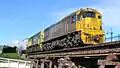 Corn-Cob was an informal term, promoted by the editors of NZ Railfan magazine, describing a New Zealand railway locomotive livery (resulting from the combination of green and yellow in the colour scheme) found in common usage amongst the railfan community. The livery was introduced on 5 May 2004 when Toll Rail took over the rail system from Tranz Rail and replaced the Bumble-Bee livery.[1] The livery was replaced by the KiwiRail Phase One livery in July 2008. DX 5379 was the first locomotive to wear the livery.[2] The livery represents the colours of Toll Rail and the colours of Australia.[2] When KiwiRail took over the rail system from Toll, the Toll logos on the locomotives were covered or "patched" with the KiwiRail logo.