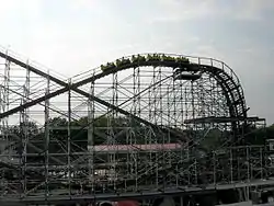 Cornball Express is a wooden roller coaster at Indiana Beach in Monticello, Indiana. The ride was designed and manufactured by Custom Coasters International. It opened on May 18, 2001. The Cornball Express had gained critical acclaim among enthusiasts, being named the #1 wooden roller coaster in the world by website ThemeParkCritic.com in 2002.[1] Cornball Express, along with 2002's Lost Coaster of Superstition Mountain, were among Custom Coaster International's last roller coasters designed before closing their doors in 2002. It was their 48th roller coaster designed.