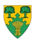 Per chevron embattled Or and Vert, in chief two oak trees and in base a garb counterchanged.[20] | |