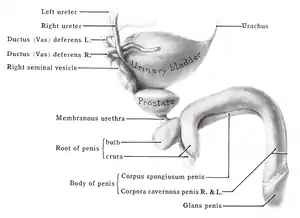 Vertical section of bladder, penis, and urethra.