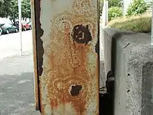 It has been stated that one of the biggest challenges in the United Kingdom railway industry is corrosion.[37] The biggest problem is that corrosion can affect the structural integrity of passenger carrying railway carriages thus affecting their crashworthiness. Other railway structures and assets can also affected. The Permanent Way Institution give lectures on the subject periodically. In January 2018 corrosion of a metal structure caused the emergency closure of Liverpool Lime Street railway station.[38][39][40]
