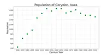 Corydon is a city in Wayne County, Iowa, United States. The population was 1,526 in the 2020 census, a decline from 1,591 in 2000.[5] It is the county seat of Wayne County.[6]
