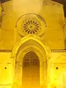 Founded in 1448, the church combines Renaissance and Medieval elements. Its most interesting feature is the rose window defined by 16 little tuff columns. The wooden portal (1614) is inlaid with floral motifs, figures of saints and coats of arms.