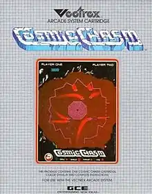 Cosmic Chasm is a 1982 vector game originally created by GCE for the Vectrex home game system. It became the first game developed for a home system to be turned into an arcade game after Cinematronics, which was in Chapter 11 bankruptcy at the time, released it as their last color vector game.