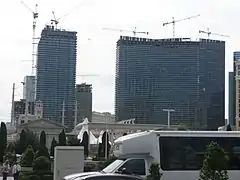 In January 2008, it was reported that the $3.9 billion project faced financial complications, as Eichner's company defaulted on a $760 million construction loan from Deutsche Bank when the developer missed a payment after failing to secure refinancing for the project. Construction moved forward as the developers searched for new financing. In late February 2008, Global Hyatt Corporation and New York-based Marathon Asset Management agreed to recapitalize the condominium-hotel project.[13] However, one month later the developer said Deutsche Bank AG would begin foreclosure proceedings.[14] They bought the hotel for $1 billion during the summer and hired The Related Cos., developers of Time Warner Center in New York, to re-position the asset, manage the development process and assist in leasing the retail and restaurant collection.[15][16] Related recommended many revisions, including bringing the casino entrance onto the strip.[17]