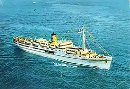 | Amerikanis | 1980–1984 | Chartered from the Chandris Line between 1980 and 1984. Scrapped in Alang in 2001.[33] | |
