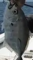 Adult cottonmouth jack are usually dark in color, while juveniles are pale with six or seven brown, vertical bars along their sides.[3] They are named "cottonmouth" because they are distinguished from other members of their family by their bleach-white mouth and tongue.[4] The cottonmouth jack's dorsal fin has a total of nine spines and twenty seven to thirty two soft rays. The anal fin has only three spines and nineteen to twenty three soft rays.[3]