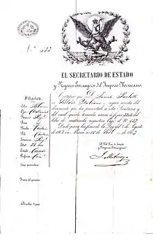 At some point in the lineage, most likely around the 1860s, the family moved out of the Kingdom of Italy into the Mexican empire, where Maria Luisa was born on June 21, 1874.[2][3]