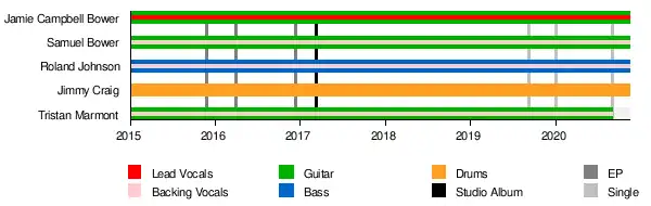 - Jamie Campbell Bower – lead vocalist, guitar (2015–2020)