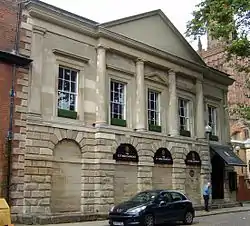 The building, which was designed by Samuel Eglinton, opened in 1783.[2] Land adjacent to the building was used as a gaol; the Prison Governor's House is still attached to the building.[3] It is thought that the building may have been a second guildhall in Coventry, in addition to St Mary's Guildhall.[4] Coventry ceased to be a county in its own right under the Boundary Act 1847.[5]
