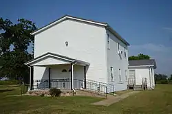 The County Line School and Lodge is a historic multifunction community building in rural western Fulton County, Arkansas. It stands at the junction of County Roads 115 and 236, just east of the county line with Baxter County, west of the small community of Gepp. It is a vernacular two story wood-frame structure with a gable roof and a cast stone foundation. The ground floor houses a school room, and the upper floor was used for meetings of the County Line Masonic Lodge. It was built c. 1879, and was one of the first community buildings to be built in the area. Intended to actually stand astride the county line (since it served communities in both counties), a later survey determined it lies a few feet within Fulton County. The building was used as a school until 1948, when the local school systems were consolidated.[2]