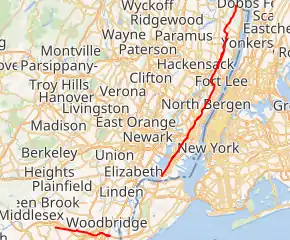 | 10.12 | 16.29 | Eastern terminus of Middlesex County segment; continuation into New York at the river's center | |||