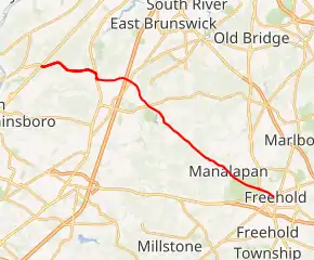 | Monmouth | Englishtown | 15.72 | 25.30 | West end of CR 527 overlap | |