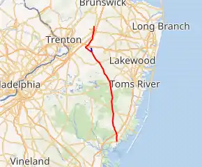 | Mercer | Hightstown | 51.55 | 82.96 | South end of CR 571 concurrency | |