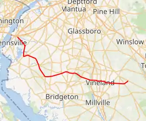 | Salem | Pittsgrove Township | 25.89 | 41.67 | West end of CR 553 overlap | |